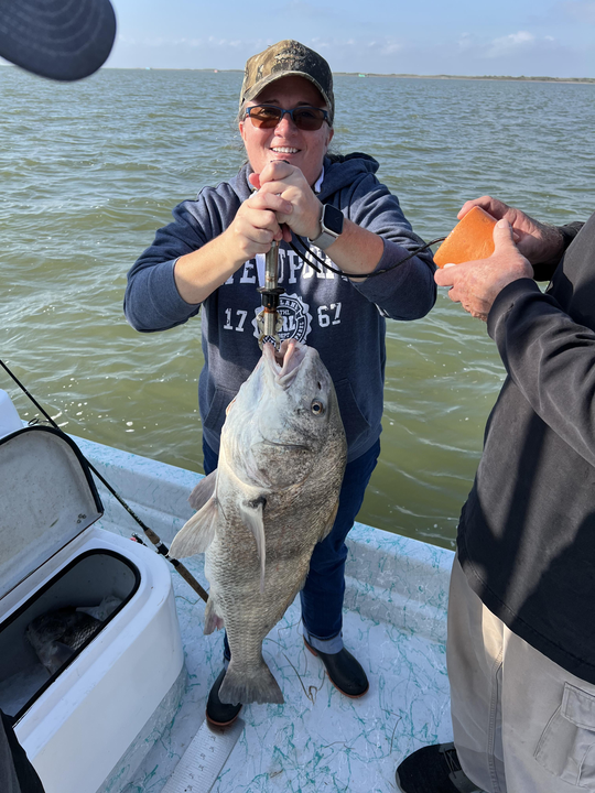 Black Drum are the bulldogs of the bay system, and Corpus has some real bruisers. These fish love structure – oil rigs, jetties, shell reefs – anywhere they can root around for crabs and shrimp. Spring brings the big spawning females into shallow water, some tipping scales past 30 pounds. They're not flashy fighters, but they'll test your drag system and your patience. The smaller ones make excellent table fare, while the big girls get a photo and swim free to spawn again.